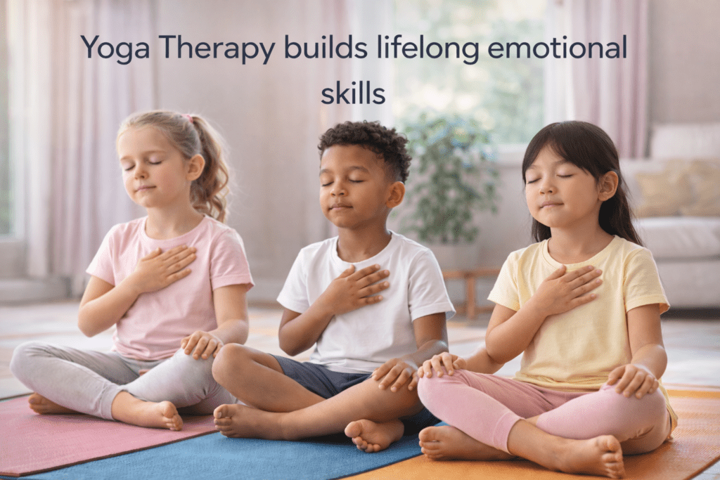 Unlike approaches that rely solely on conversation, yoga therapy works through movement, breathing, and awareness. This makes it especially effective for children who find it difficult to explain how they feel.